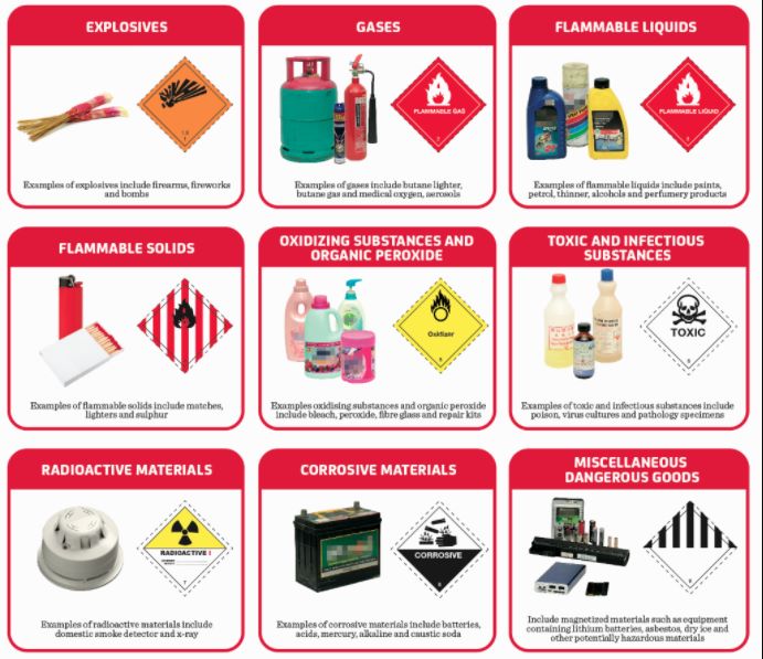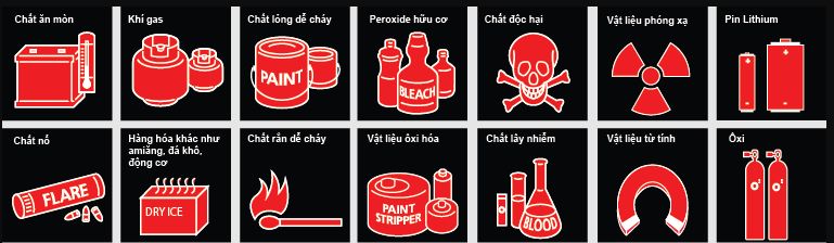 - Vật hoặc chất dễ nổ, dễ cháy và các chất gây nguy hiểm mất vệ sinh, gây ô nhiễm nôi trường.